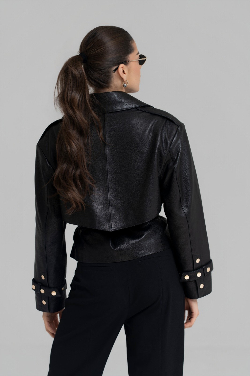 Redefinește-ți stilul cu o piesă statement care îmbină forța designului modern cu rafinamentul pielii naturale de calitate superioară. Această geacă neagră din piele naturală Jumbo, cu un aspect ușor texturat și finisaj satinat, este creată pentru femeia care dorește să se remarce prin eleganță și atitudine.