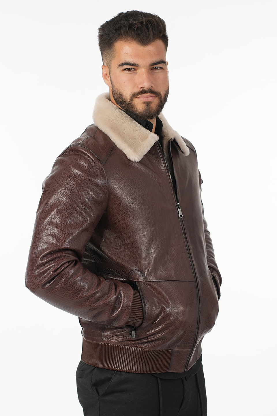 Jachetă din piele naturală de vită cu blană de miel toscan – robustă, elegantă, irezistibilă