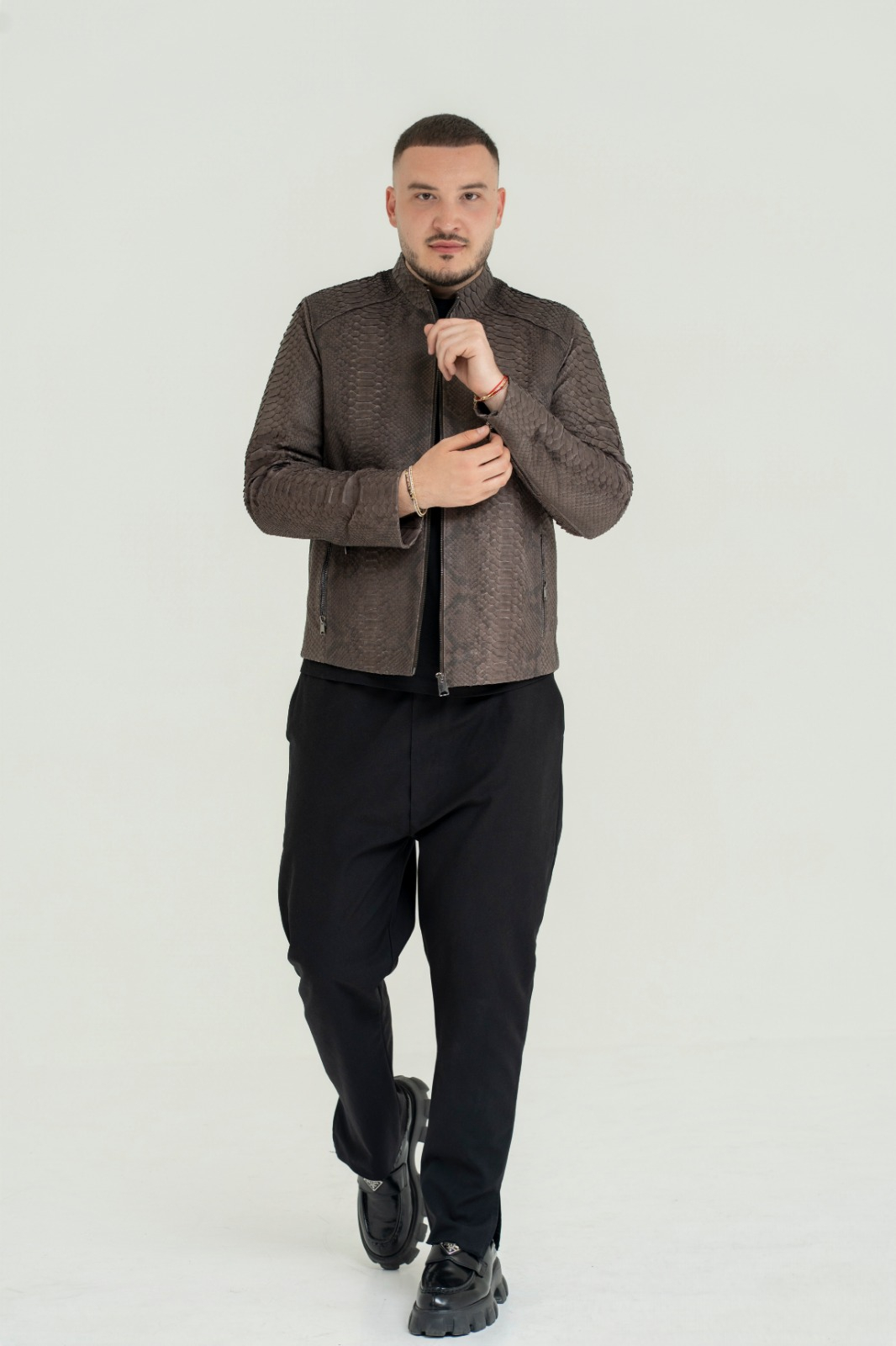 Jachetă Bărbătească din Piele Naturală – Textură Exotică Python Grey